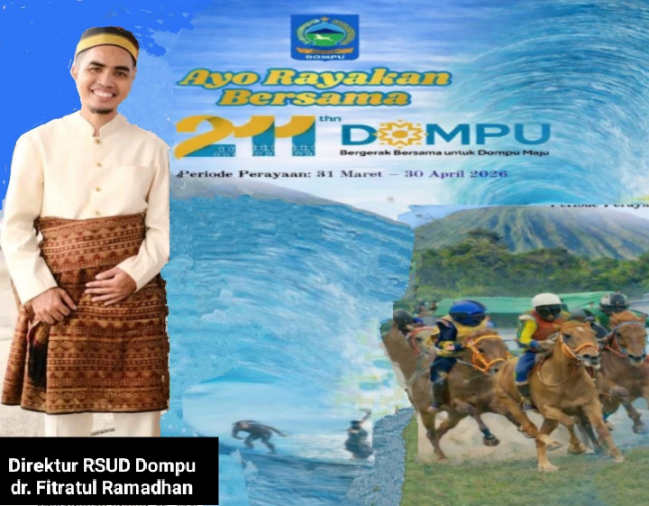 Dompu, NTB, Tintaupdat.com – Momentum hari yang bersejarah bagi masyarakat Dompu, Direktur RSUD Dompu, dr. Fitratul Ramadhan beserta seluruh jajarannya, Mengucapkan Selamat Hari Jadi Dompu yang ke-211 Tahun.